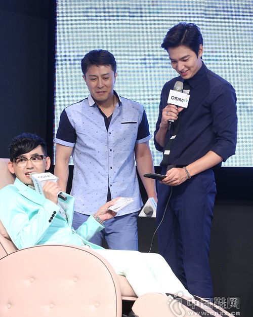 身为按摩椅代言人,李敏镐在活动现场相当敬业地推荐按摩椅的各种功能,更是躺在按摩椅上气派秀长腿,相当吸引人眼球。被问到平时外出工作会随身携带什麽物品时,李敏镐机智回应称:「最想把按摩椅带到飞机上,跟我到不同地方去。」