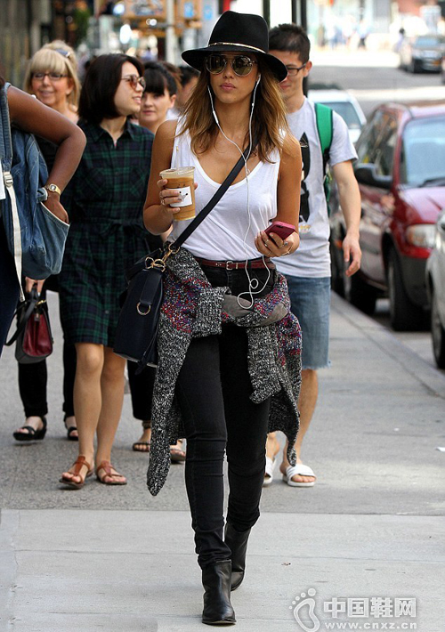 中国鞋网9月30日讯,美国纽约,辣妈杰西卡-阿尔芭(Jessica Alba)一身潮装鞋服现身街头,面无表情,而当她拿起手机自拍时,一秒变笑脸,让人哭笑不得。(合作媒体: )