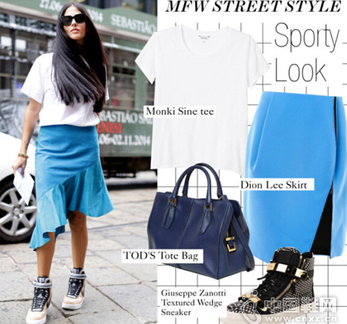 最近,半裙很忙,因为它成为了针织上衣、机车外套等的新搭档,当然,也可以与运动鞋来个优雅与活力的对撞了。因为运动鞋看起来相对笨重,所以,潮人们喜欢选上比较特别的半裙,譬如显轻盈的侧开叉、不对称或者流苏设计,中和了下身的笨重感;又或者是体积稍显夸张的大伞裙,让视觉膨胀效果将小腿显得更细。