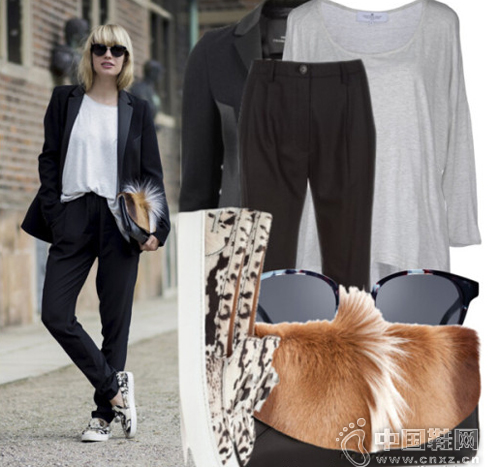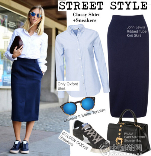 牛仔裤配运动鞋,那是最基本最省心的搭配,只要在上衣和包袋上进行改变,就大有不同,素色相对来说休闲又舒服,可以配上与运动鞋同色系的包包或丝巾,有层次感又又呼应。稍凉的时候,就搭上件近年流行的大廓形简约外套吧,看起来非常有型哦。