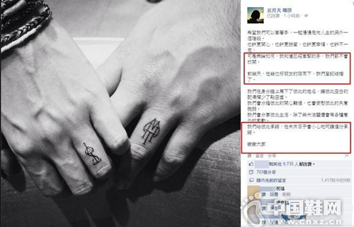 玛莎这番真情流露、字字恳切的认婚宣言,立刻引来众人关注,还在留言中附上疑似是和Vicky一起秀出无名指画有图腾,手牵手的黑白照片,浪漫之举也让粉丝超级感动。而他将图文贴出后,马上就被“恭喜、祝你们幸福”等留言洗版。