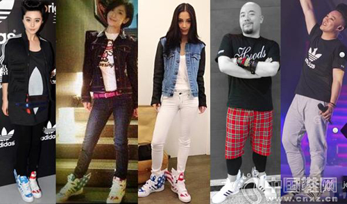 说Adidas咱就不得不盘点它大紫大红的经典款。备受明星们宠爱的Originals X Jeremy Scott Wings就首当其冲。从纯色到彩虹,范爷可是有几双翅膀鞋,那么多的街拍小编无需盘点了吧;谢娜、Agelababy、王伟文作为三条纹的死忠也都是各种颜色好几双哦,而Eason更是与徐濠萦夫妻档穿情侣鞋高调示爱,JS wings让人不得不联想到作为上帝的使者经常穿上一双有翅膀的鞋穿越于天空的希腊神话人物——Hermes(赫耳墨斯),高调创意的翅膀真是明星们拉风凹造型利器!