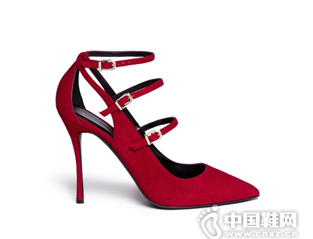 Nicholas Kirkwood以结构性设计深入人心,此款高跟鞋的三重搭带融合成完美的建筑廓形,更透出浓浓的复古味道,选用高贵的深红色麂皮打造,如同童话故事中的红舞鞋,将女人味展现得淋漓尽致。