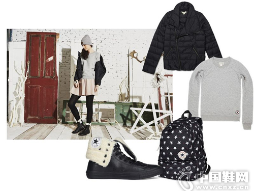 基本色的单品相信每个女生的衣橱里都少不了好几件,选择对、搭配好才是王道。轻薄的羽绒服,短款的设计,金属拉链的细节融入让整体呈现出帅气的机车夹克造型,干练中性又能很好地展露身材的比例。运动风的灰色卫衣平整的版型、柔软的面料让它可以搭配新年里的很多其他外套。而翻边绒里的牛皮高帮鞋是最独特的,浅色绒毛不仅保暖性能极佳,外翻的处理增添了层次感还拉长了身材的比例。这么利落的一身搭配再增添一款印花背包更能突显新年来到时的愉悦轻松的心情,实用的内在和简洁的外部装饰让你可以带着它去到下一个目的地。(合作媒体: )