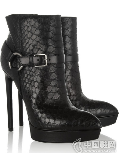 走野性性感路线的女士尽管尝试Saint Laurent 这款经典黑色蟒蛇皮及踝靴,银色环鞋带极为抢眼,让人们将注意力集中到夸张的鞋拱上。厚防水台和高跟可从视觉上令腿部更显纤长。