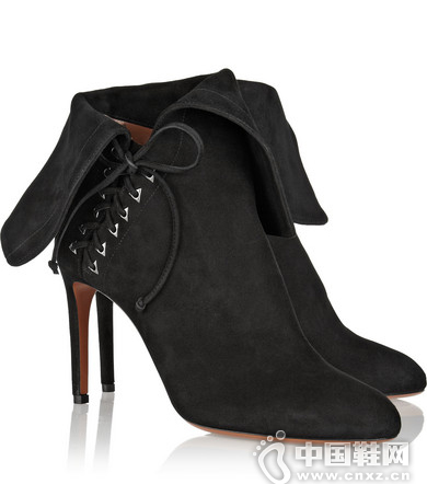 翻折的踝靴时髦又带感,是近年大火元素,Alaia 这款黑色绒面革及踝靴兼具优雅气息和前卫风范。它在意大利制成,做工完美无瑕,采用折叠式靴口和繁复的侧面绑带式设计。建议裸露双腿,充分展现其魅力。(合作媒体: )