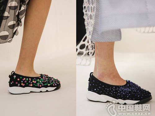 中国鞋网2月5日讯,这几季各大品牌如Prada用钉珠装饰搭配色彩绚丽的鞋底、Chanel以材质颜色各异的粗呢拼接、Dior也将浅口运动鞋缀上珠片和宝石纷纷将浮夸的设计装饰运动鞋,快来看看这些任性鞋款吧!