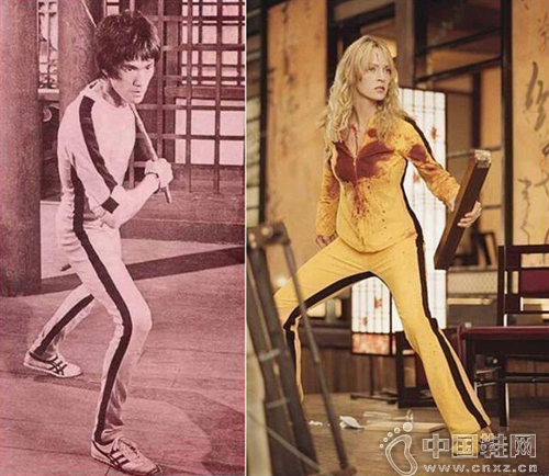 后来乌玛•瑟曼在2004年上映的《杀死比尔2》中重现了功夫皇帝当年的造型,她脚上穿的就是Onitsuka Tiger Tai Chi Le。