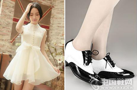 内增高鞋黑白拼接总是经久不衰的鞋款,漆皮的雕花镂空,优雅而精致,圆筒形打蜡细带展示年轻活力,搭配半高领的系扣设计和飘逸的蝴蝶结腰带的连衣短裙,总给人一种可人的亲切感。(合作媒体:)