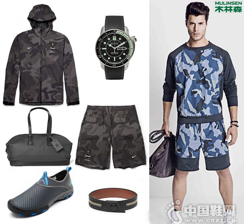 运动型男的短裤加入迷彩元素,突显街头文化的气息,懒人不费心的做法是一整套搭配着穿,搭配上万能的简洁运动包和木林森户外舒适网布鞋,整体上带来一种轻松又有型的感觉,这样的搭配值得一试。