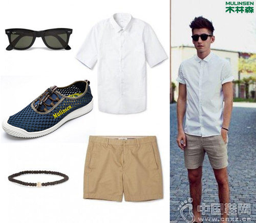 白色衬衫是文艺小青年的风格,就算是短袖也要适当地卷起来,以免看上去显得老气。此外,搭配卡其色短裤与透气十足的木林森户外网布鞋,将夏日风情体现得淋漓尽致,还有别忘了复古眼镜哦。(中国鞋网-最权威最专业的鞋业资讯中心。合作媒体:)
