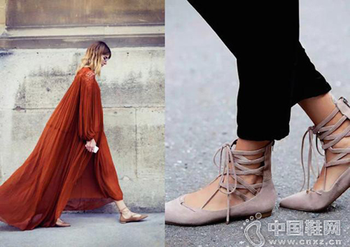 中国鞋网4月7日讯,少女心是什么?甜得发腻的蓬蓬裙、蝴蝶结?No!想要摩登又不甜腻的少女心,一双绑带平底鞋就够啦。