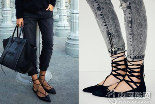 时尚博主的潮流嗅觉总是那么敏锐!当你发现平底绑带鞋是新潮流之后,他们早就乖乖的换上了。黑色款与灰黑色系牛仔裤是绝佳伴侣。