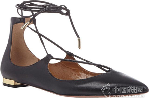 Aquazzura Christy黑色真皮绑带平底鞋 约人民币4185元(合作媒体:)