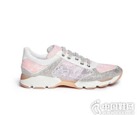 RENÉ CAOVILLA 蕾丝水晶真皮拼贴球鞋