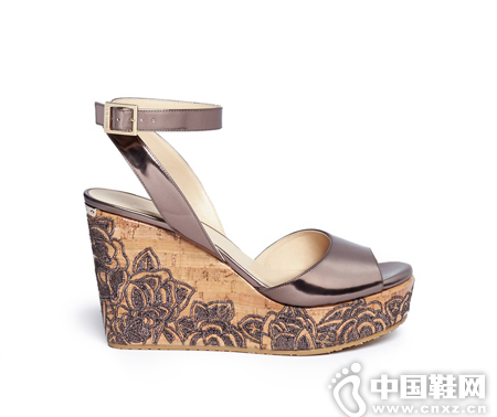 JIMMY CHOO 金属搭带刺绣坡跟凉鞋