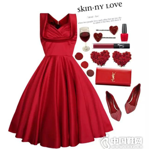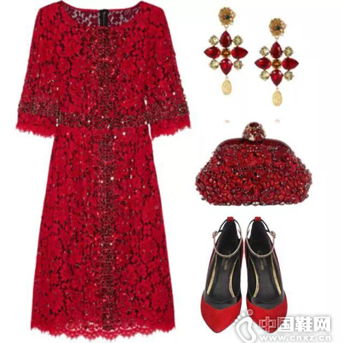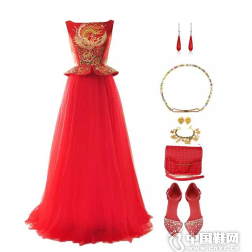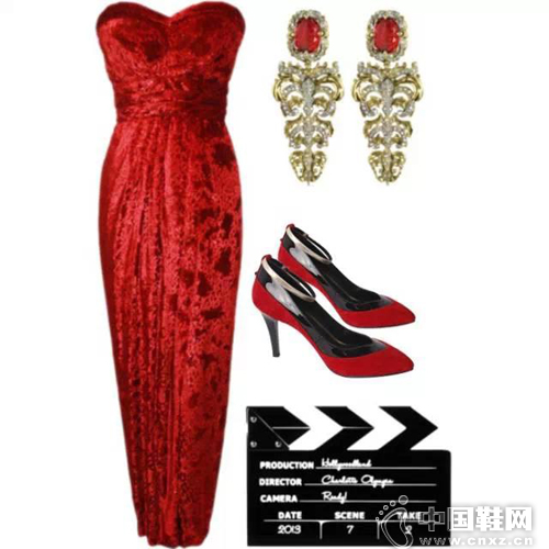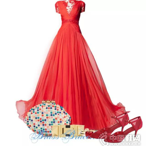 这一身红色的抹胸礼服裙十分鲜艳夺目,亮眼的红色让穿上这款礼服裙的MM可谓力压群艳。若无一双时尚大气的高跟鞋可是无法将这耀眼光芒完全展现,因此红色高跟鞋,黑色包边,金色鞋带,让你瞬间成为全场的焦点!