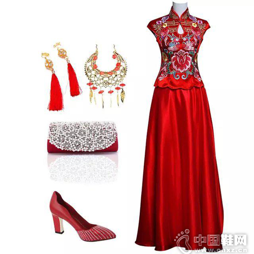 传统的旗袍婚纱,如何穿出新意来。搭配更具时尚感的高跟鞋和包包,一定会让你在婚礼现场大放光彩!