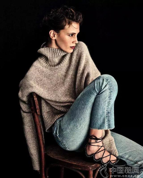 示范搭配:高领毛衣+牛仔裤+黑色绑带鞋