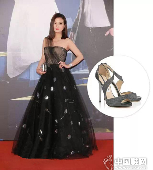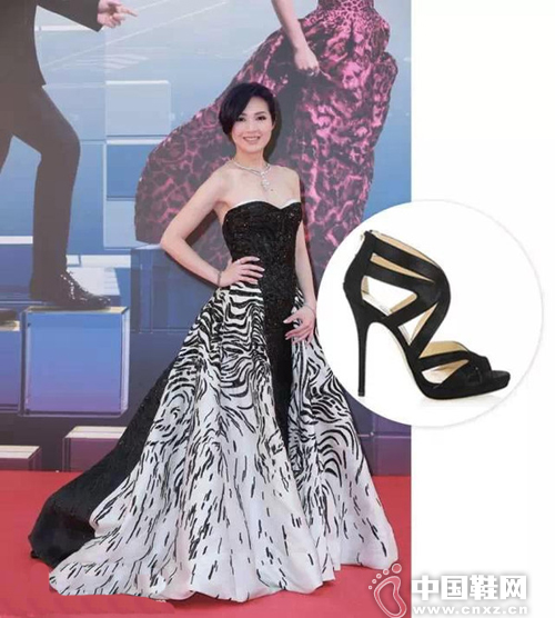 杨千嬅穿着Zuhair Murad黑色裹胸斑马纹礼服也是气场十足,搭配一双Jimmy Choo的黑色交叉绑带高跟鞋你们觉得怎么样?(中国鞋网-最权威最专业的鞋业资讯中心。合作媒体:)