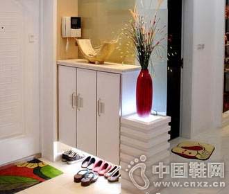 鞋柜装修效果图二:只有最大程度的增加采光面积,方能最大限度的争取到更多的日光照明。将门厅和其他功能区之间的隔墙拆除,改成完全开放型的格局,能够有效地其他空间的光源引入到门厅部分,从而改善小空间的光照问题。