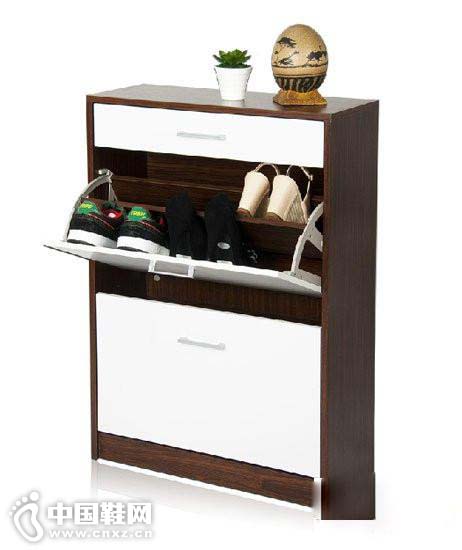 鞋柜装修效果图四:优雅时尚的外观造型极具大气之风,简单的胡桃木色搭配白色简约却优雅,颇有韩式简约风格。鞋柜转盘设计美观,做工精良,气质十足。