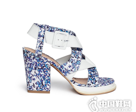 Robert Clergerie 花卉印花交叉带粗跟凉鞋,采用折叠交叉带的设计,白色和蓝色花卉印花清新素雅,镂空部分又富含性感味道,粗跟设计让您时髦亮眼的同时享受舒适与平稳。