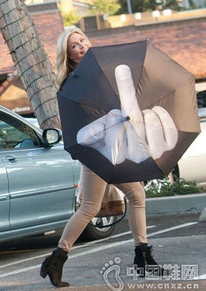 据说这款雨伞的设计不是用来防雨的而是专门针对狗仔队的,当被拍的时候亮出这么把伞来,也是狗仔们一个不错的收获。