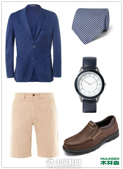 西装配短裤成为统领潮流的商务形象,搭配木林森户外商务休闲懒人鞋,以及简约手表,无论是出席什么场合都能轻松驾驭。