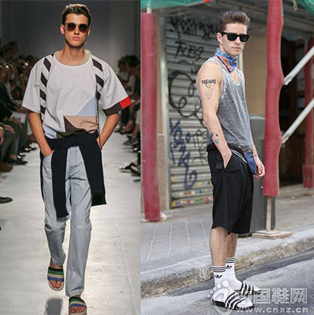 想把浴室拖Shower Sandals穿出时尚感真的很不容易,搭配时的每个小细节可要注意,裤长不能盖过脚踝,一不小心弄巧成拙,可是会让人家误以为是公园打拳的爷叔!