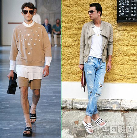 中国鞋网5月19日讯,设计师总喜爱在得体的套装上搭配一双合适的鞋履,然而俘虏大批潮人的三条杠的 adidas和黑底白钩的 Nike 拖鞋,却让无数人咆哮“为什么这么丑”!然而往往丑的东西才是穿搭功力的考核准则,令人心颤的潮范儿不是人人都凹的出来。