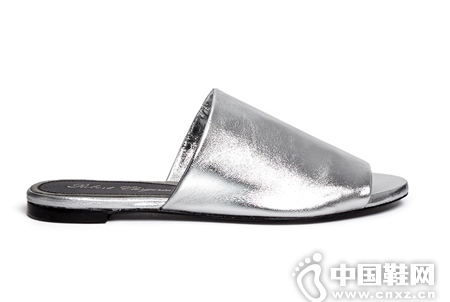 Robert Clergerie 金属真皮平底凉鞋,采用了简约的露趾廓形,并以柔软的银色皮革制作,在光线下分外抢眼,轻松打造出耀眼迷人的休闲风格。(中国鞋网-最权威最专业的鞋业资讯中心。合作媒体:)
