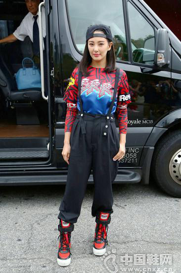看完汤唯的穿搭忽然想起上次征战时装周的张雨绮在助阵Marc by Marc Jacobs秀的当天穿的鞋子同样是Marc by Marc Jacobs高筒运动鞋。而张雨绮就非常聪明,选择一条高腰的黑色背带长裤,从视觉上将双腿拉长,这样再穿上高筒运动鞋就不会出现“萝卜腿”的状况了!