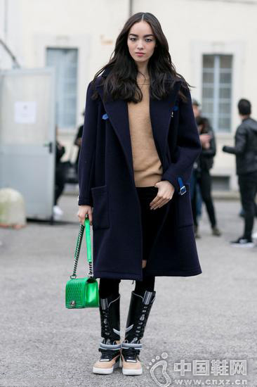 什么想说的吗,真的没有什么想说的。Nike X Riccardo Tisci Air Force 1高筒运动鞋搭配长款风衣,加上亮绿色Chanel包包,全身都是妹子们的心水搭配!