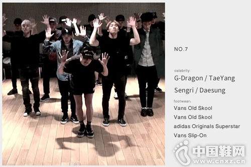中国鞋网6月11日讯,上周揭晓了音乐人 Pharrell Williams 获得美国设计师协会( CFDA )时尚偶像大奖,圈中好友 Kanye West 亲自上台为其颁发奖项,侃爷上脚的无疑是本月即将发售的 Yeezy 350 Boost,令各界鞋迷更加期待该鞋款的到来。强势回归的 BIGBANG 于本月再度发布两首新单曲和 MV,在近日又公开了在舞室编排《BangBangBang》的视频,除了 GD 、太阳和大成都选择平时爱穿的 Vans ,胜利则上脚一款型格十足的黑色 Superstar ;本周还有国民大师兄陈伟霆和转型谐星路线的韩庚上镜露面;还有本周唯一的女名人 - 水原希子, Puma 的经典现款也展露出不少复古运动感觉,以下马上为你放送!