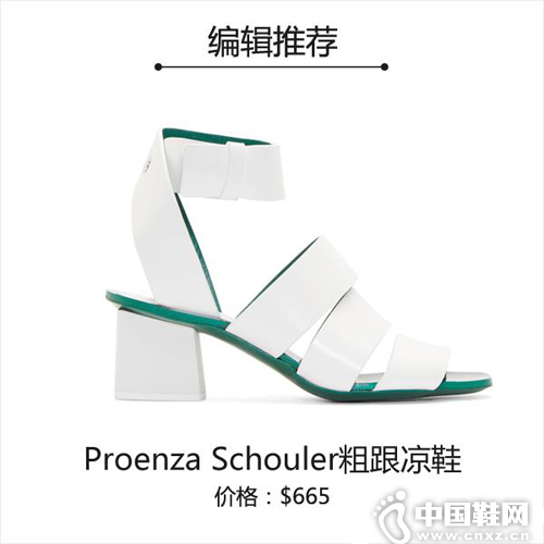 ProenZA Schouler的这款粗跟鞋,白绿的配色非常清新舒适。