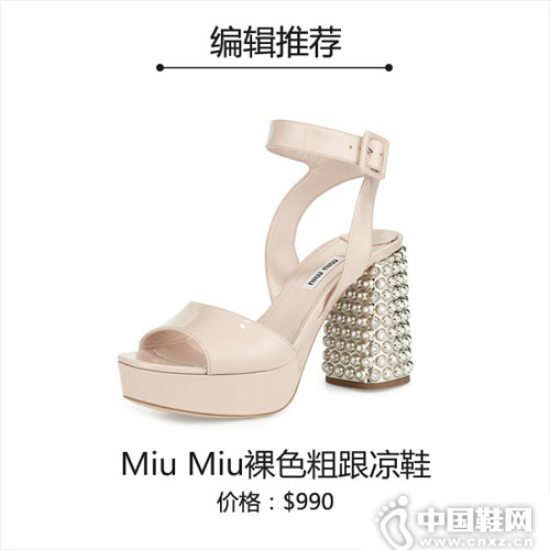 Miu Miu的这款裸色粗跟鞋,乍看鞋面简洁,没有任何的装饰,但它的心机全在鞋跟,小球形立体装饰即特别又增添了几分时尚感。(中国鞋网-最权威最专业的鞋业资讯中心。合作媒体:)