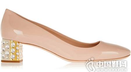 Miu Miu 水晶缀饰肉粉色漆皮中跟鞋,约5429元。