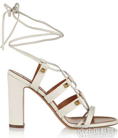 Valentino Rockstud 米白色皮革凉鞋,约7104元。