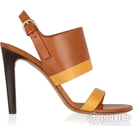 Chloe 茶色皮革拼接凉鞋,约4312元。