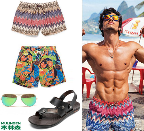 要想炫耀一身肌肉好身板的男士,花哨的印花沙滩短裤将助你一臂之力。再搭上木林森户外舒适简约的凉拖鞋,值得提醒的是亚洲人选平角泳裤,一般不要选择低腰款式,会显得泳裤很宽腿很短。
