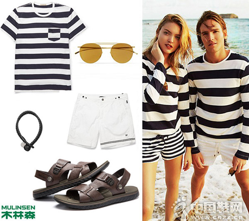 一件经典的条纹海魂衫是海滩度假的不二首选,时髦而且相当百搭。完全可以为她挑选一件小尺寸穿起浪漫情侣装,注意与海魂衫搭配的沙滩裤就以简洁纯色为主,别忘了木林森户外凉拖鞋的点缀。