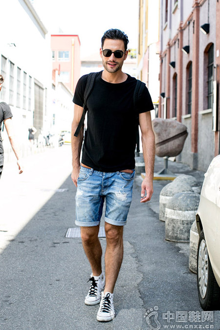 中国鞋网7月10日讯,气温骤升夏日逼近,又到短裤“猖狂”的时节,别以为天气热就能“想露就露”,清凉兼具时尚感决非易事。想要为男友挑选一条短裤却不知从何下手?那么男模街拍绝对是最佳示范。无论是搭配衬衫、T恤亦或是Polo衫,都让你的他帅气有型。
