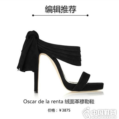 Oscar de la Renta 这款“Sandy”穆勒鞋选用光滑的黑色绒面革于意大利精制而成。后跟处饰有超大蝴蝶结,从背后看尤显时尚别致。不妨将它作为打造派对装扮的首选鞋履。
