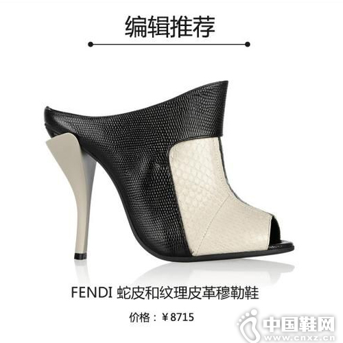 Fendi 这款穆勒鞋采用艾尔斯蛇皮和纹理皮革制作而成,为本季的必备鞋款注入几分建筑美感。这双凉拖式高跟鞋于意大利精制而成,富有雕塑感的鞋跟颇为惹眼。不妨搭配七分裤,打造从办公室直赴晚餐约会的装扮。