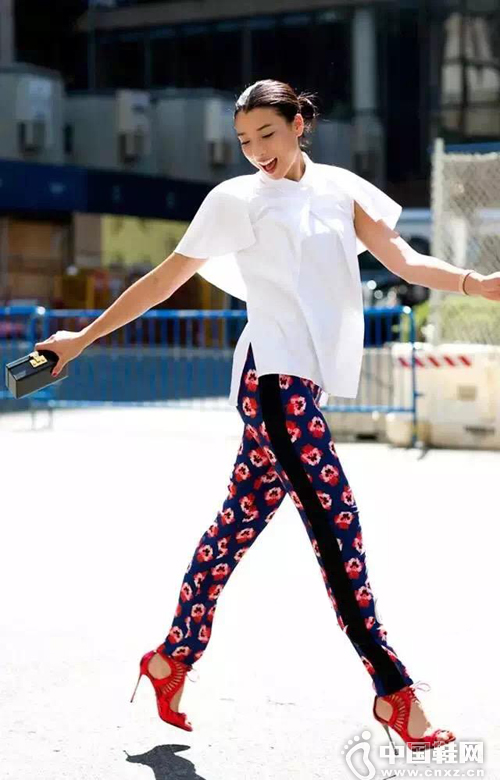 绑带高跟鞋是当仁不让的气质款,搭配印花裤简约纯色上衣就能轻松吸睛,复古鞋子多了一丝复古的味道,行走于都市间从容优雅。