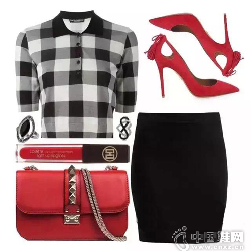 经典黑红搭的好品味众人皆知,一身黑灰再穿上红色高跟鞋,搭配皮裤也不在话下!