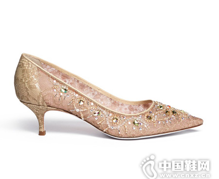 RENÉ CAOVILLA 网眼蕾丝宝石高跟鞋,裸色主调蕾丝面料透出淡雅温婉气质,全手工打造的精致彩色宝石绽放成甜美的花朵形状,不但能点亮素色系日常造型,更势必能成为晚宴场合的最佳选择。