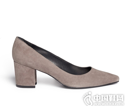 STUART WEITZMAN 尖头粗跟鞋,采用粗跟设计,配合流畅廓形,让您于穿着时感到舒适自在,灰褐色麂皮素雅大气,轻松打造出干练时尚的上班造型。