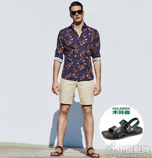 透气真皮凉鞋舒适又百搭,与印花衬衫、短裤相得益彰,绝对是度假装扮的首选。整体给人干净清爽的印象,更具夏天气息。